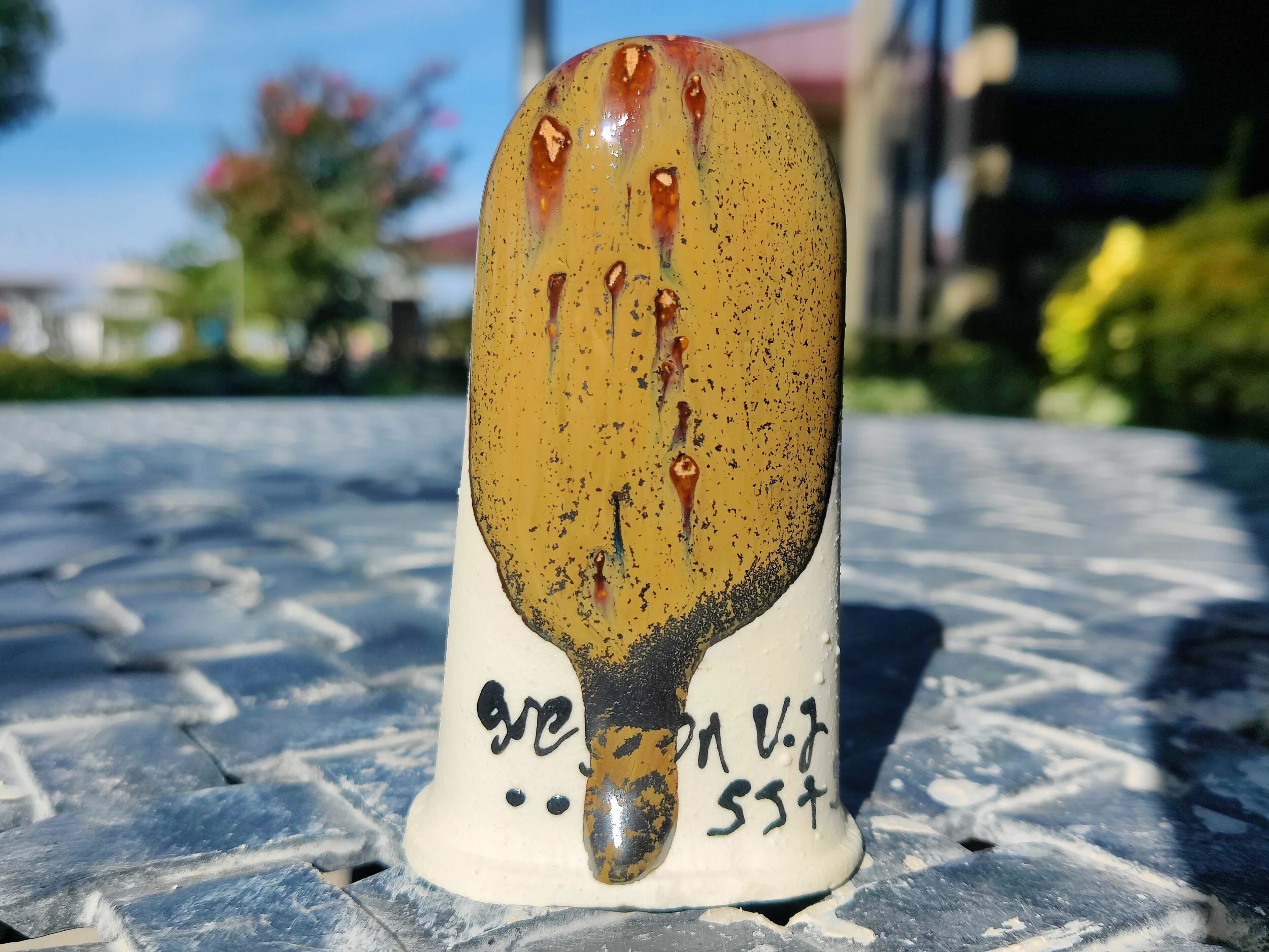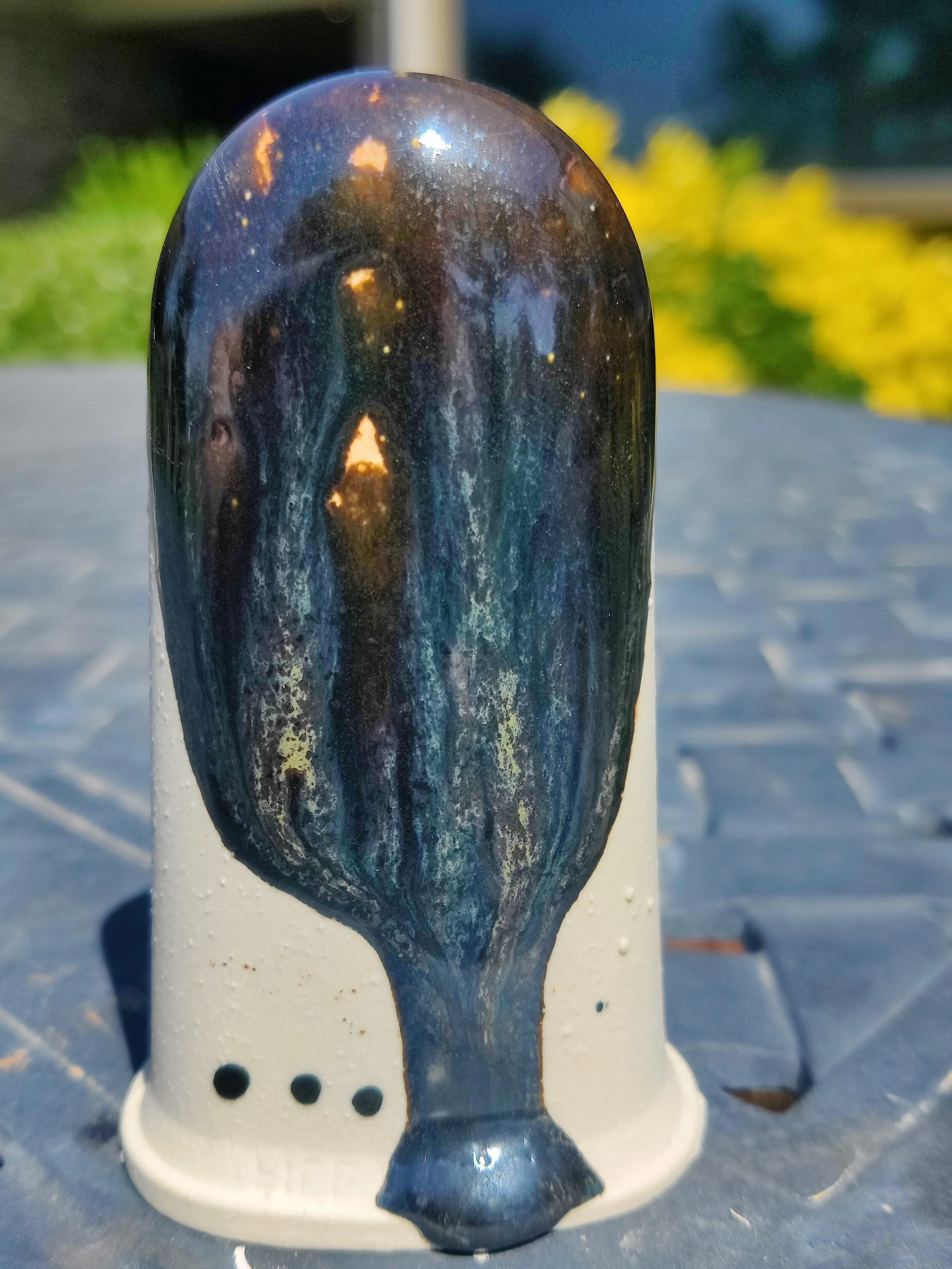 Throughout my blogs I often stress the importance of measuring your specific gravity, especially with your handmade glazes; That being the ratio of minerals that make glaze vs the amount of water they are suspended in. While this is one of the easiest variables to measure within glaze tuning and designing, it is only one of the prime variables. In truth it’s specific gravity, application, clay absorption, viscosity, and temp are all just as important. Most glaze will work with proper application and specific gravity tuning but viscosity is the next big one we need to start keeping measurements of. Luckily for us the Ceramic materials Workshop teaches us how to do this with Epsom solution or Darvan giving us a way to measure this by way of a Zahn cup (I like to use Zahn cup #3). Keep in mind viscosity is a fluid's resistance to flow, essentially how "thick" or "thin" a fluid is. A fluid with low viscosity, like water, flows easily, while a fluid with high viscosity, like honey, flows slowly. A Zahn cup is a small cup with a little hole that will measure how long it takes for a fluid to get through the hole or break. The longer it takes to get through the hole the more viscose the fluid is. In our case we can use something like Epsom salt solution to bring up the viscosity of the glaze. Here is a short video with my newest glaze “Greymon v.2” showing massively different results by tuning the viscosity with Epsom salt solution and showing what happens when your application is too thick.